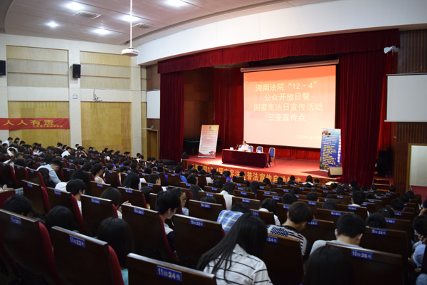 我校以“宪法是国家根本大法,弘扬宪法精神,共建和谐校园”为主题,开展了系列普法教育活动。学校网站、广播、宣传栏等都增加了宪法宣传内容;教职工积极组织宪法知识宣讲会、学生开展宪法主题班会,切实地将集体学习和自主学习相结合;法学师生对三亚相关法院的真实案件进行模拟庭审,师生进行现场观摩;学校还特别邀请了海口海事法院三沙海事法庭庭长蔡斌航法官、海口海事法院三亚法庭副庭长王茂以及相关业界人士走进校园,与师生开展宪法研讨会,共同学习宪法精神。