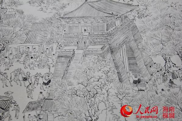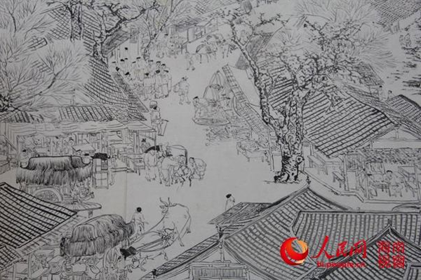 李烽临摹的《清明上河图》一景:亭台楼阁