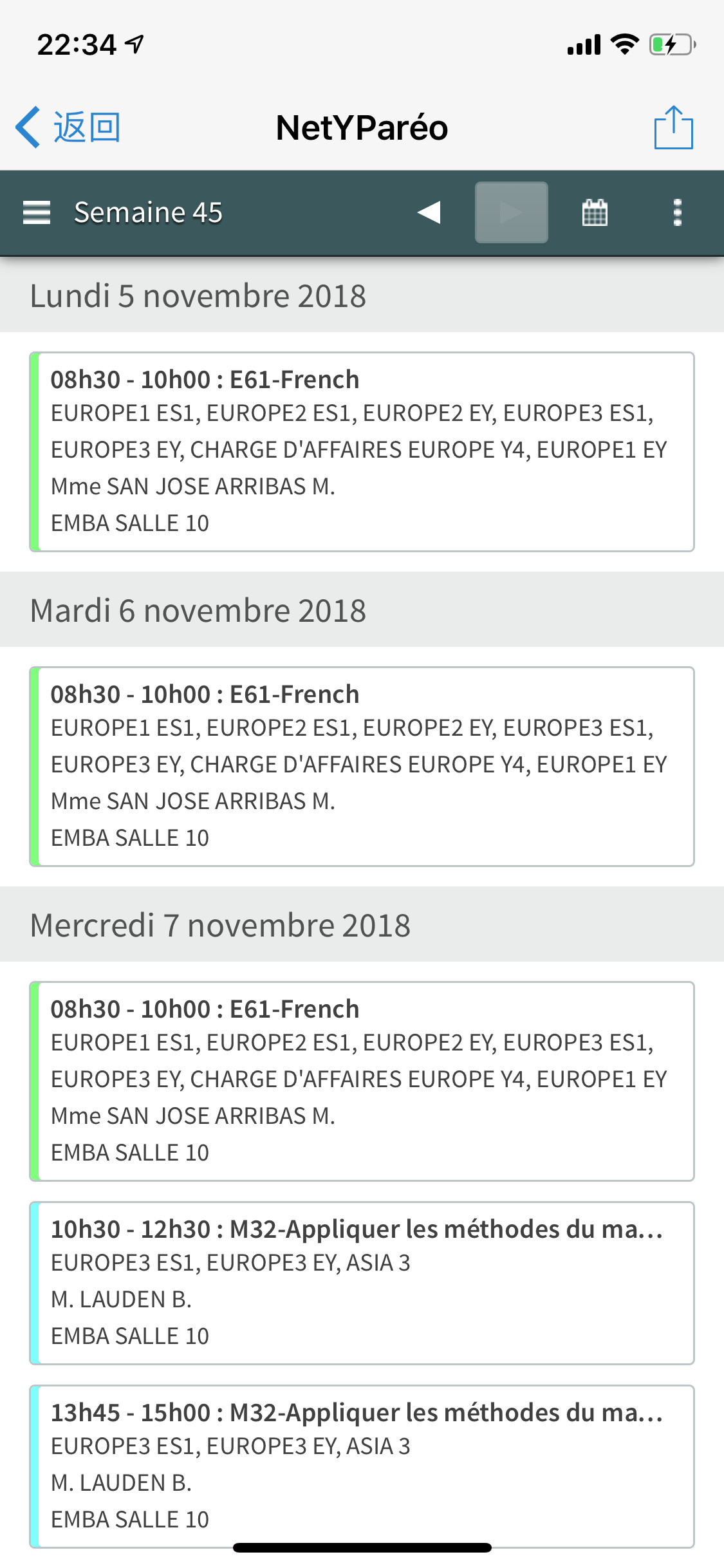 除了必修的法语,我的课程是三年级商科-国际贸易类课程。