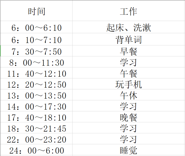 学习时间规划的话,每个人都不同,还是需要考虑自己的学习习惯进行。我一般早上7点起床,8点到图书馆,中午傍晚太热就会在图书馆门口吃午饭,晚上则是10点结束。在后期的时间则会在晚上适当加长时间。但是一定要保证自己的休息睡眠。