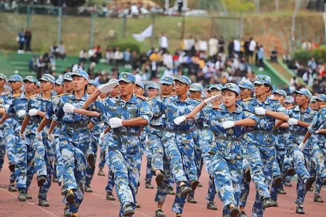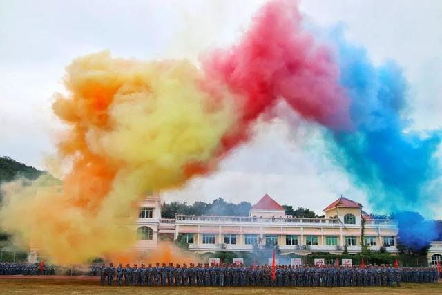 标兵队方阵,整齐划一的步伐,响彻蓝天的口号,14天的军训生活就此圆满落幕;