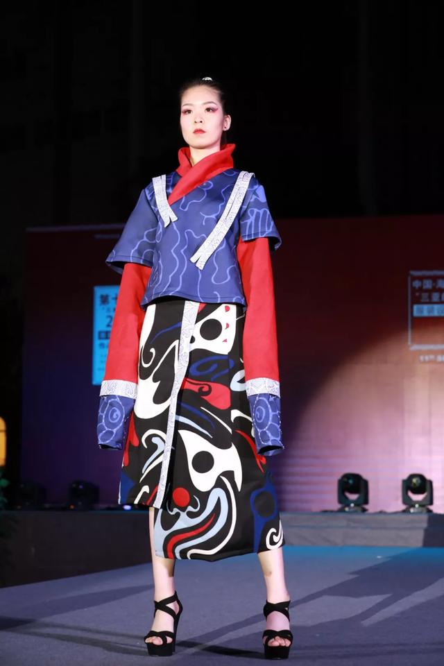 与往年不同的是,今年所有参赛选手都是服装与服饰设计专业2016级毕业生。此次大赛,不仅仅是一次优秀作品的选拔赛,也是服装专业学子们四年丰富求学生涯的一次总结。此次大赛分为两个竞赛单元,即“形塑东方”和“源远流长”,29组参赛作品在模特、音乐、灯光、舞美等多重元素的共同交织下逐一亮相,带来华美的视觉享受。