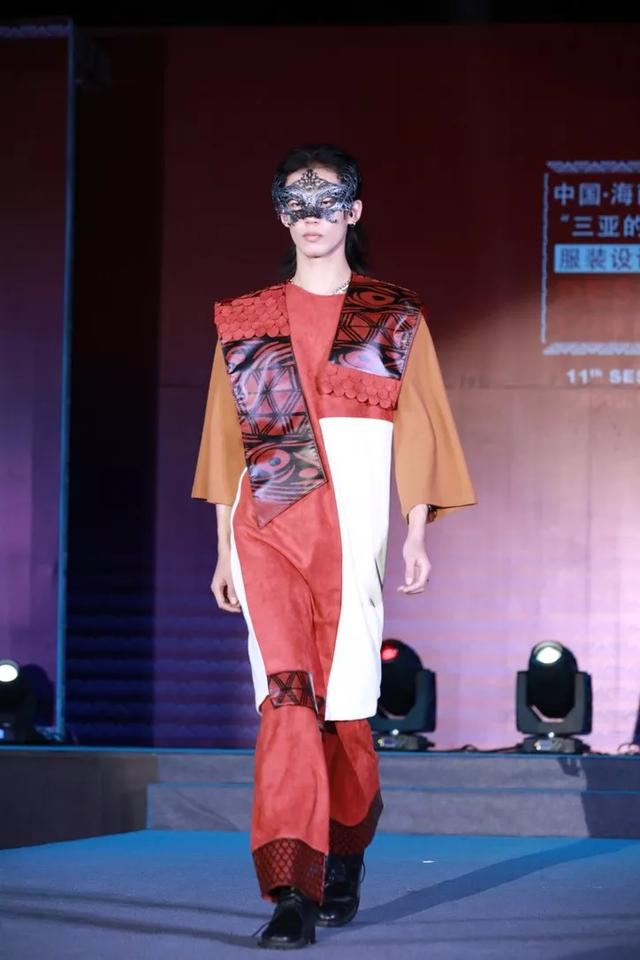 设计师张双林以黎族婚庆服饰为灵感,用手工刺绣和黎族特有的织锦花边进行创意设计,使民族传统文化生活与潮流时尚相结合,体现出崭新的黎族风情。