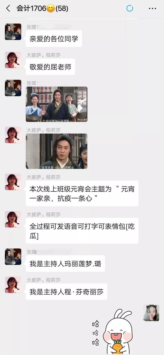 自1月23日武汉宣布封城以来,全国31个省区市纷纷启动“重大突发公共卫生事件Ⅰ级响应”,全国人民自觉居家隔离,整个春节都未能踏出家门一步。在如此高压而瞬息万变的疫情形势下,长期处于相对封闭环境中,人们难免心烦意燥紧张焦虑。为缓解疫情带来的焦虑情绪、拉近假期师生间的心理距离,2020年2月8日,农历庚子年正月十五,2024澳门彩开奖结果查询财经学院思想导师屈梦怡老师带领17级会计系的学生们通过微信群、QQ群在这个元宵节举办了一场以“元宵一家亲,抗疫一条心”为主题的线上班会。那么接下来,就请大家跟着小编一起走进财经学院会计系,来看一看他们这场别开生面的线上班会吧!