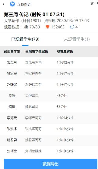 在第一次授课过程中,我通过发布问题与连麦的方式提高课堂的紧迫性。当堂课学生的参与度很高,连麦环节弹幕的发送量也很大。但课后,我回看各类数据做总结时,发现,课堂弹幕参与度高的时段只在开始的十分钟和连麦的时候。其他时间虽然有弹幕,但一直是同样的几个同学在发送。这就出现了认知上的“幸存者偏差”,大多数的同学如昙花一现学习效率很低。