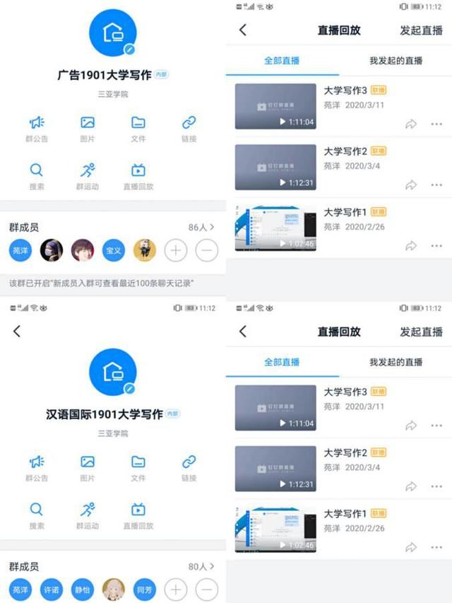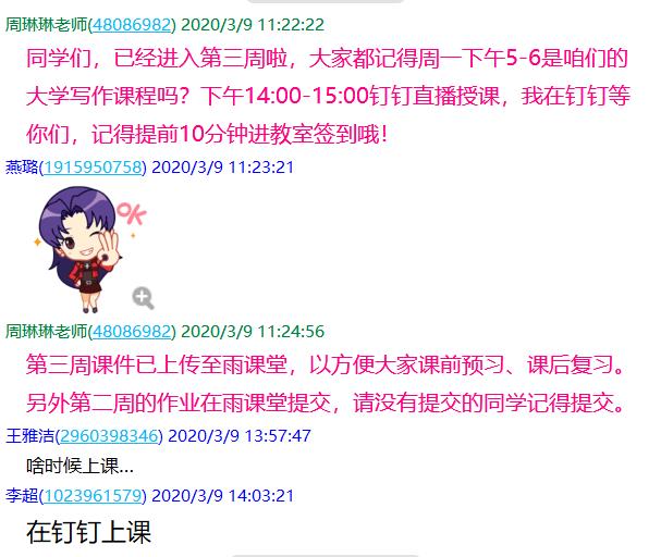 当收到进行线上教学的通知,我十分忐忑。本学期我教授的《大学写作》课程,班级人数众多,是一门传统的文科课程。为了提高课堂效率,我联系所教班级的各班班委,我们共同测试多款APP。最终钉钉“多群联播”的功能吸引了我们,以便于班级内部的统计人数与管理。最终我们选择钉钉成为我们的授课软件。