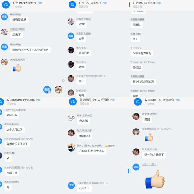 这次活动,不仅仅检验了学生写作课的学习效率,还提升了我们共同的家国之情,稳固了学生久久居家不能外出的烦躁之心。其中,我还通过诗歌了解到一位同学的外公是奔赴武汉一线抗疫的白衣“战士”,同学们都自发以“点赞” 形式对他表示无限敬意。