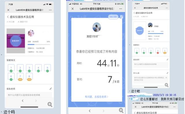付三丽老师在《虚拟仪器技术与应用》这门课的教授中,充分利用平台的优越性,精心设计教学内容,数据化分析学生学习效果。充分学习各类教学平台后,付老师最后“雨课堂”进行线上教学。重新调整教学安排,将原有的课堂教学内容,细化成若干个知识点以便学生在线学习。