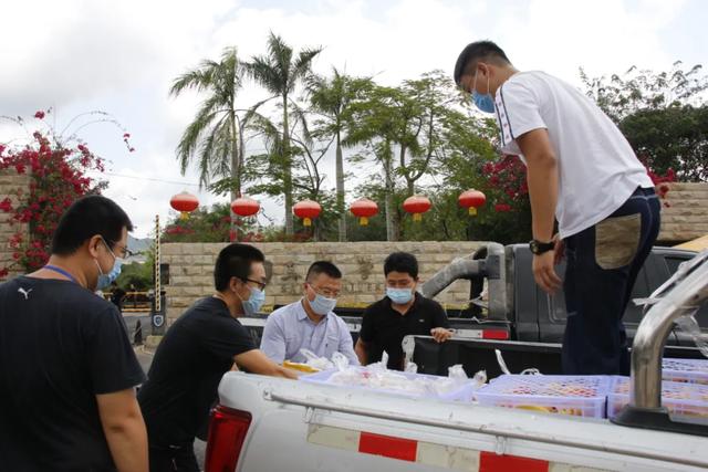3月24日一大早,张国强和好友代旭一起驱车赶往学校,车上是刚刚采摘下来的第一批新鲜的贵妃芒。出于疫情防控措施需要,他们不能把芒果送入校园,于是和留守校内的工作人员简单的做了交接。然后老师们再次在学校对这批芒果进行了分发。一份份甜蜜伴随着“接力式”的传递到达了每位留校师生的手中,这份让人意外的礼物带来了浓浓的暖意和惊喜。