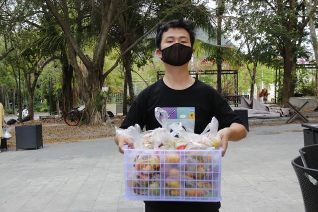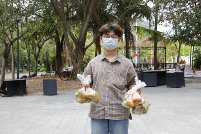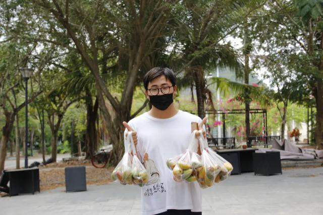 张国强说,他在大学期间选择自主创业,因此寒假期间一直留在三亚。以前,自己有过多次想要回报母校的想法,但却没有合适的机会,正好这个季节贵妃芒成熟了,作为一个以电商水果经营为方向的创业者,他毫不犹豫的把第一批最好最新鲜的果子留了下来,送给留校的同学、为了疫情防控工作坚守岗位的老师和后勤工作人员。