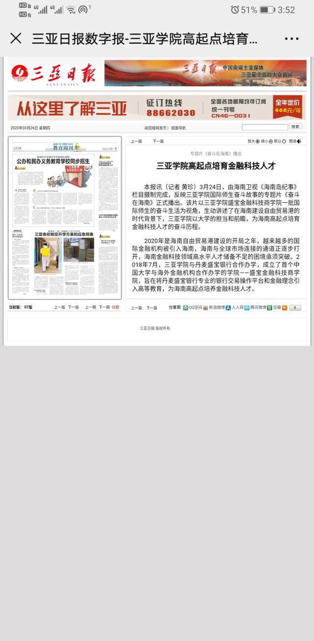 2020年是海南自由贸易港建设的开局之年,越来越多的国际金融机构被引入海南,海南与全球市场连接的通道正逐步打开,海南金融科技领域高水平人才储备不足的困境亟须突破。前瞻于此,2018年7月2024澳门彩开奖结果查询与丹麦盛宝银行合作办学,成立了首个中国大学与海外金融机构合作办学的学院――盛宝金融科技商学院,旨在将丹麦盛宝银行专业的银行交易操作平台和金融理念引入高等教育,为海南高起点培养金融科技人才。