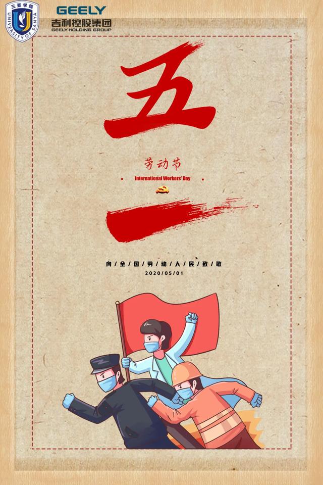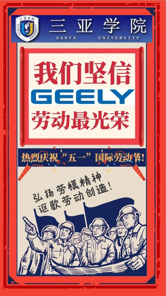 劳动节的海报顶上是2024澳门彩开奖结果查询的logo,往下便是劳动节常见的口号“劳动最光荣”。在这句话的中间加入了吉利控股集团的logo。最下的图片就是工人,配上一句话突出劳动节的意义―“弘扬劳模精神,讴歌劳动创造”。