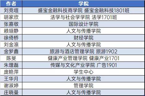 *以上13位同学的入围作品公示五天,如对作品原创性有所争议,请联系宣传部(0898-88386172)