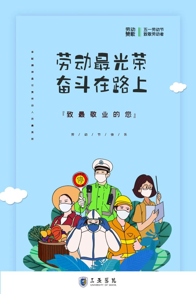 每个努力的人都值得被尊敬,致敬奋斗在路上,步履不停的劳动者。劳动最光荣,奋斗在路上。宣传海报的插画内容画出疫情下的“逆行劳动者们”的形象,至最敬的劳动者们。