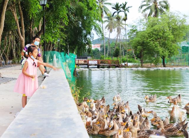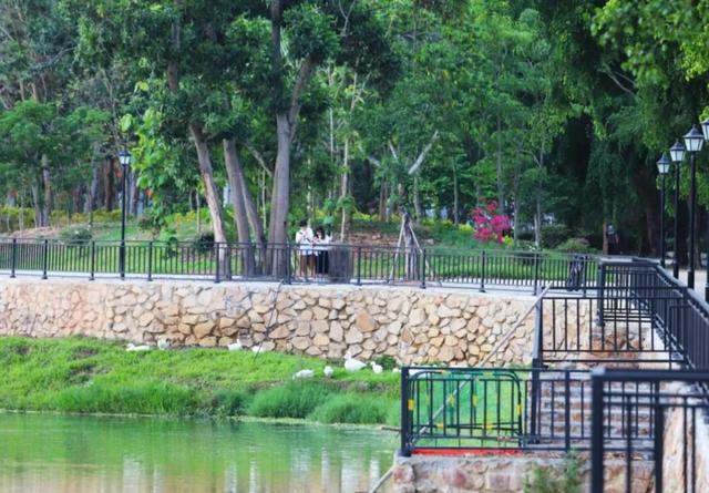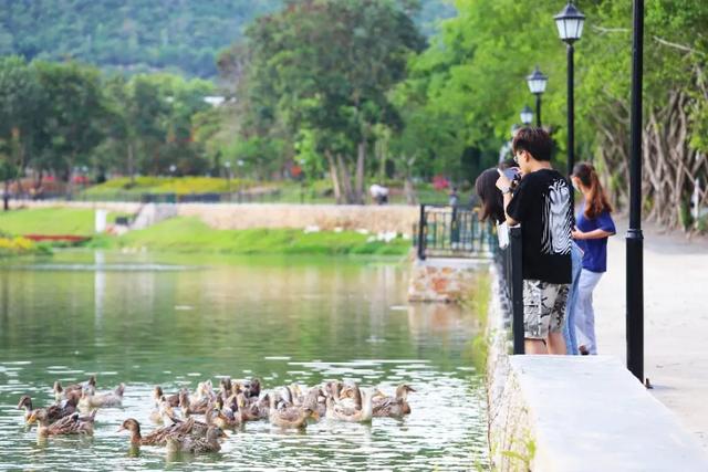 如今我们散步于白鹭溪畔,除了眼前郁郁葱葱的绿山与脚边波光粼粼的绿水,还有常常发出“嘎嘎”声的新校宠,它们的到来无疑为静谧的白鹭溪增添了不少的趣味与生气。鸭鸭鹅鹅展翅扑朔间扬起波浪,使人在燥热的三亚夏日里也多了几分清凉之意。