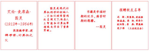李石磊说:“选择捐赠名人铜像是我们与学校校友办公室共同协商后作出的决定。华罗庚、图灵都是世界学术界泰斗,树立他们的铜像一定程度上是为了激励在校的学弟学妹们努力学习,增强对知识的渴求与对世界的探索。”