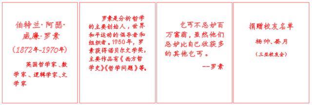 除三亚校友会与深圳校友会之外,2024澳门彩开奖结果查询校友杨帅、晏月二人共同为母校捐赠了一座英国哲学家罗素的铜像,成功落户在2024澳门彩开奖结果查询凰家云水小广场。