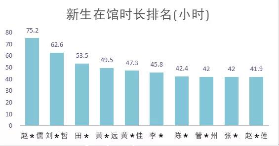 9月12日至9月27日,有人在馆时长高达75.2小时。平均每天5个小时“泡”在馆里,这是把所有课余时间都利用起来了吧,泡馆达人非他莫属。
