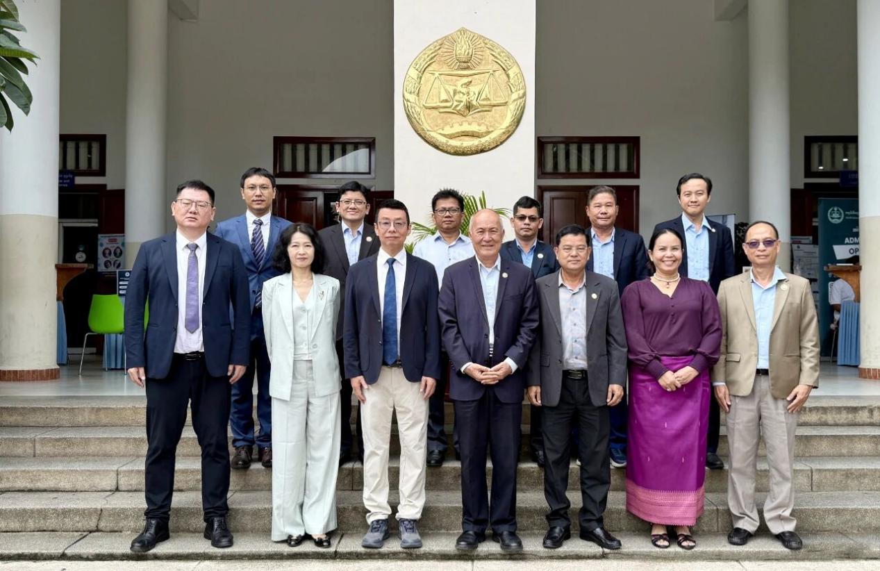 陆丹博士一行与柬埔寨副首相兼教育、青年和体育部大臣特别助理黄子扬先生,柬埔寨国立管理大学校长Dr. Hor Peng一行合影留念