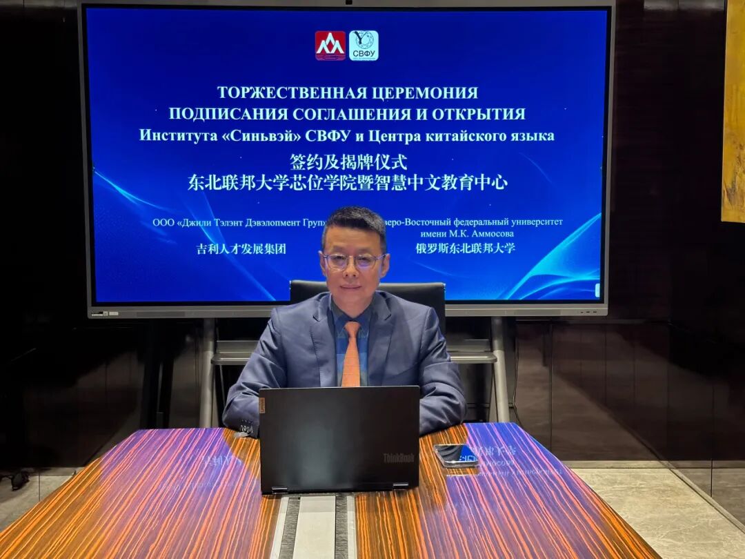 2025年9月29日,吉利人才发展集团携芯位教育与俄罗斯东北联邦大学以线上线下联动的形式,举办了“俄罗斯东北联邦大学·芯位学院暨智慧中文教育中心”签约揭牌仪式。吉利人才发展集团CEO、芯位教育董事长陆丹博士线上见证,吉利人才发展集团副总裁、芯位教育执行总经理车怡博士现场签约并揭牌。