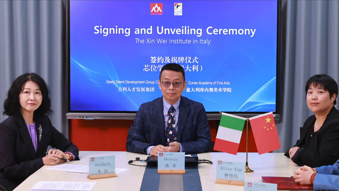 2025年10月9日,吉利人才发展集团携芯位教育与意大利库内奥美术学院以线上线下联动的形式,举办了“意大利库内奥美术学院芯位学院”的签约及揭幕仪式。