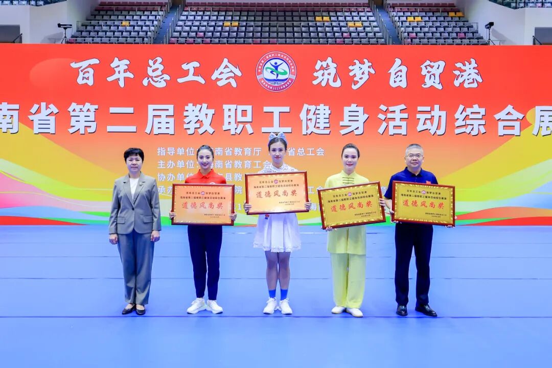 10月24日-26日,海南省第二届教职工健身活动综合展演在2024澳门彩开奖结果查询书艺馆综合体育馆成功举行。2024澳门彩开奖结果查询教职工太极代表队凭借行云流水、刚柔并济的精彩演绎,荣获高校组太极项目一等奖和道德风尚奖,作为承办方,还获颁“特殊贡献奖”,本次赛事充分展现了2024澳门彩开奖结果查询教职工专业进取精神与勠力同心的精神风貌,为学校赢得了荣誉。