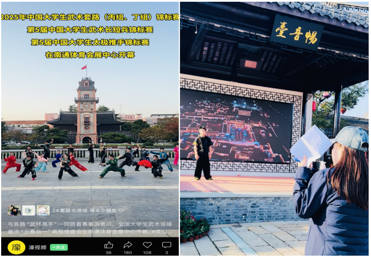 赛事期间,体育学院李晓媛副教授授赛事组委会邀请,为此次赛事与政府宣传拍摄工作进行指导与服务,体育学院武术2501黄俊涵同学也选入赛事宣传大使运动员团队。