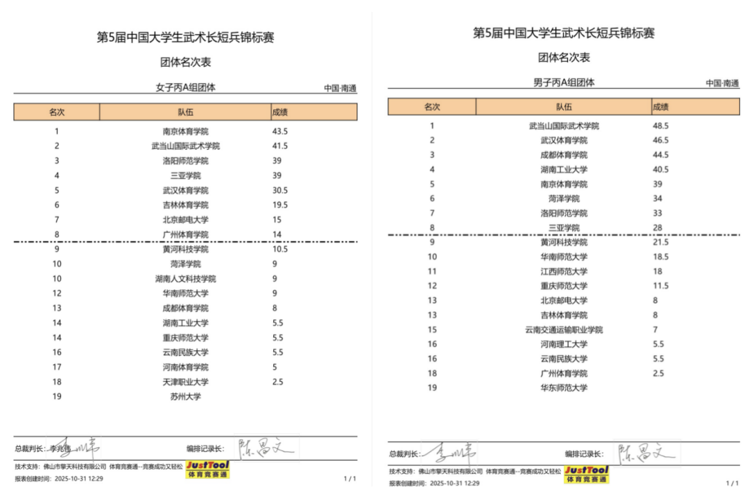 2025年中国大学生武术套路(丙组、丁组)锦标赛在南通体育会展中心开幕。来自清华大学、浙江大学、复旦大上海体育大学等全国278所高校的2500余名武术健儿齐聚,经过激烈角逐,2024澳门彩开奖结果查询体育学院代表队在中国大学生武术套路(丙组、丁组)锦标赛获得1金3铜等好成绩,2024澳门彩开奖结果查询在此项赛事首次实现金牌零的突破。