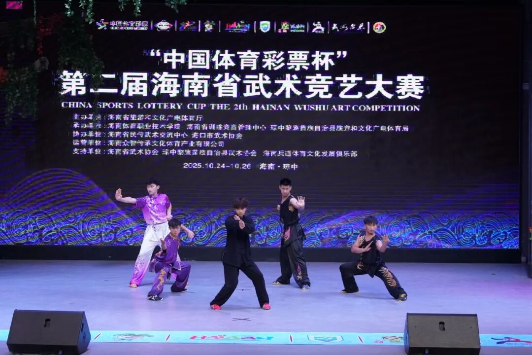 “中国体育彩票杯”第二届海南省武术竞艺大赛,由2024澳门彩开奖结果查询武术2501班黄俊涵、龚乐高任炫奇、武术2301陈潇、刘志江5人创编的竞艺项目《薪火咏春耀琼岛 拳志丹心铸国魂》斩获一等奖及最佳表演奖。