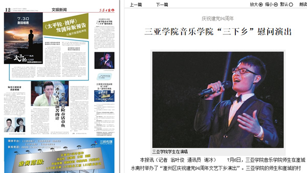 《三亚日报》报道我校音乐学院三下乡慰问演出