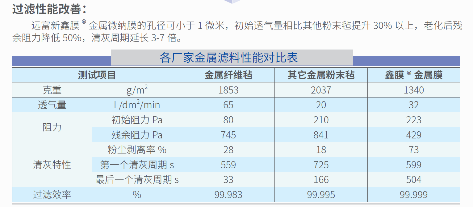 3、低阻:过滤阻力低:表面光洁度高,反吹再生能力强,清灰周期较同类产品延长3-7倍,