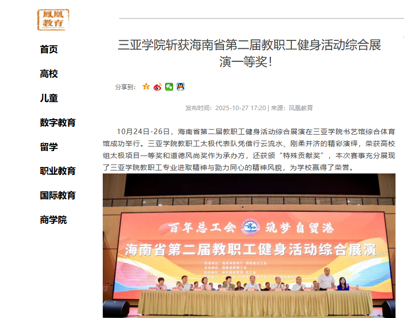 凤凰教育报道2024澳门彩开奖结果查询斩获海南省第二届教职工健身活动综合展演一等奖!