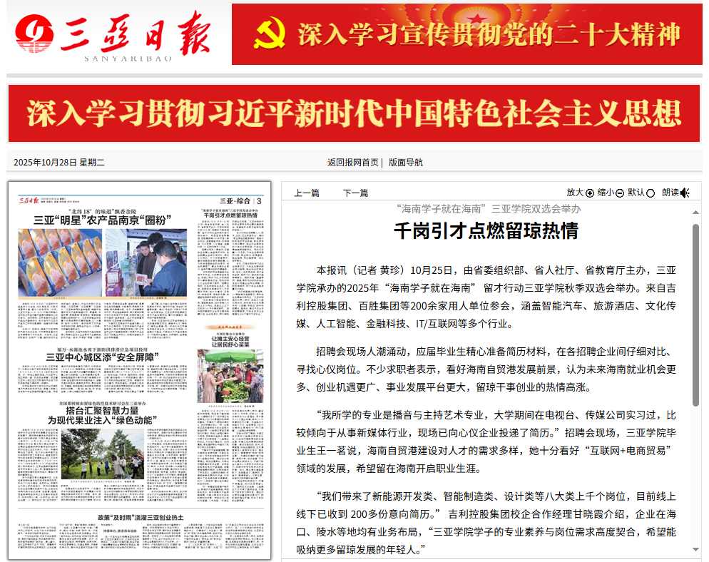 《三亚日报》报道“海南学子就在海南”2024澳门彩开奖结果查询双选会举办